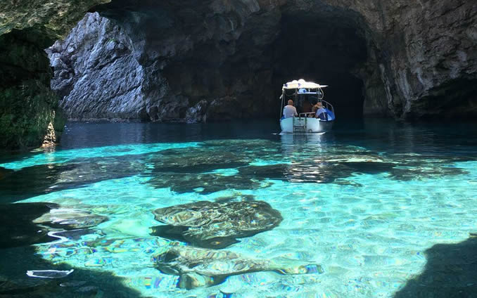 Una volta giunti al porto chiedere per l'escursione alle grotte ed una guida, dietro pagamento, vi accompagnerà via mare a fare il giro in barca dell'isola.