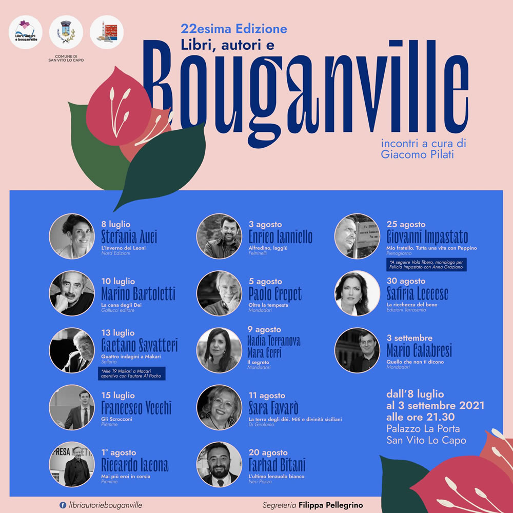 Another multi-year event of the tourist season of San Vito Lo Capo is the literary review "Books, authors and bougainvillea", which will begin on 8 July and will end on 3 September after a cycle of thirteen events, in which San Vito Lo Capo will be as always the suggestive showcase for authors and publishers.