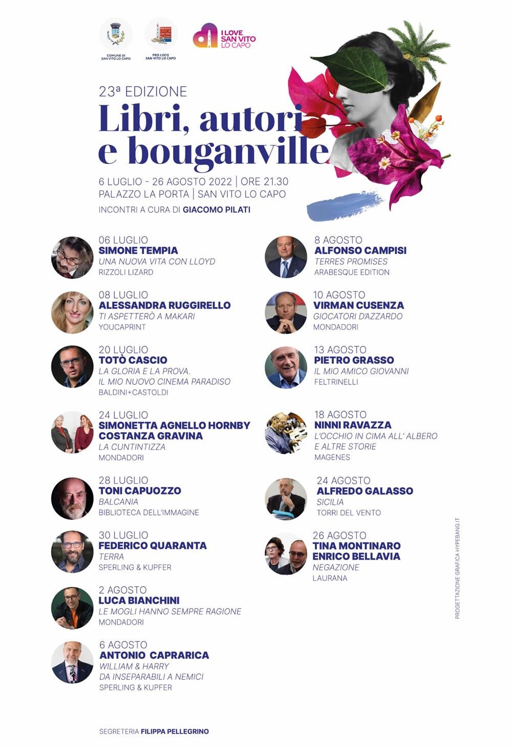 Born from an idea of the writer and journalist Giacomo Pilati, in recent years with the patronage of the municipality of S. Vito Lo Capo the literary review has offered valuable opportunities for readers and writers to meet in a truly suggestive location surrounded by jasmine and boungaville. , hence the name of the event, which every year attracts several famous writers of great national fame.
