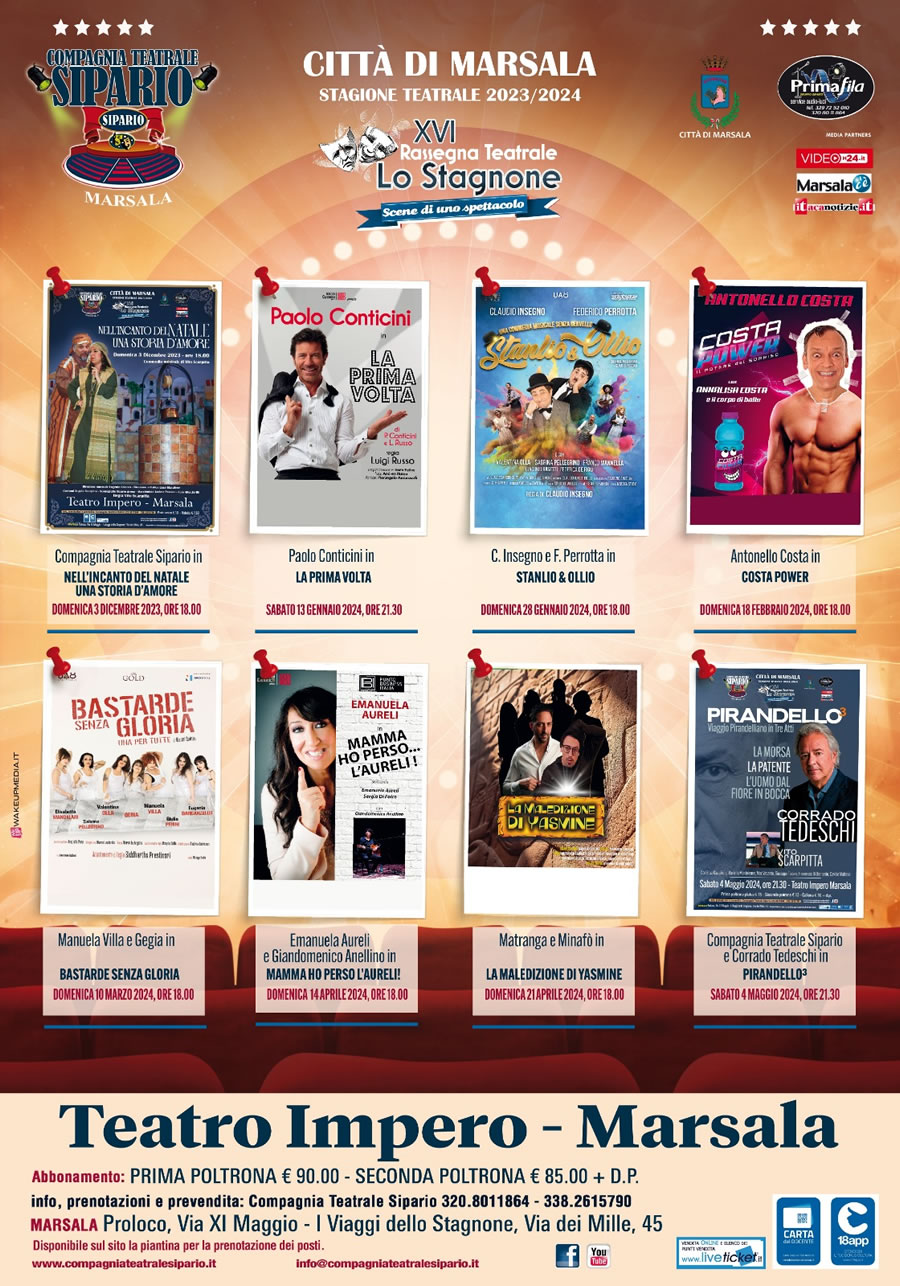 The program of the fifteenth edition of the Stagnone theater festival has been drawn up, which this year too can count on artists of the highest level such as Paolo Conticini, Emanuela Aureli, Corrado Tedeschi, Manuela Villa and Gegia, but at the same time well-known comedians have not been forgotten Sicilians like Matranga and Minafò and Antonello Costa.
