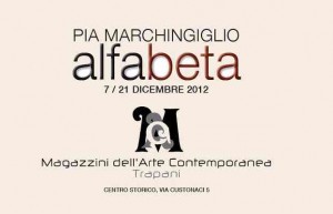 Show: Alfabeta Location: Warehouse of Contemporary Art Address: Via Custonaci, 5 Trapani Opening: December 7, 2012, 19:00 Period: From December 7 to December 21, 2012 Hours: Daily 17:00 / 20:30 Friday, Saturday, Sunday: 10:00 / 13:00 and 17:00 / 23:00