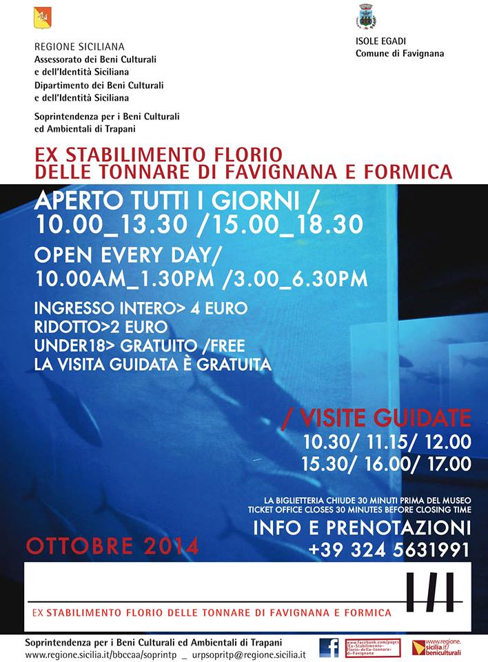 TOUR INFO AND RESERVATIONS (+ 39) 324 5631 991 (active only during opening hours) (Tourist Office City of Favignana +39 0923.925443 ) The ticket office closes at 13.15