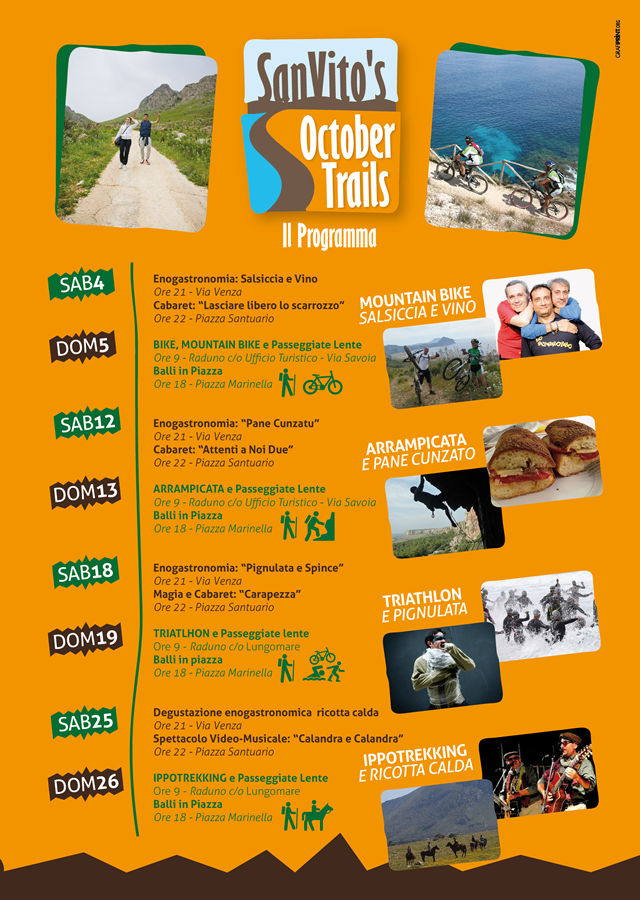 Who said that in San Vito the long summer program (only call it "summer" is a stretch!) Ends each year with the delicious "Cous Cous Fest"? Of course, it is the pivotal event, but as it is preceded by a number of important appointments, what follows is equally valuable and fun, like the upcoming "San Vito“s October Trails."