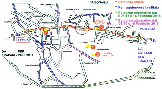 Sunday, 02/08/2015 Parade floats (Ang. Via. Erice - Detroit) at 16. 30 -23.00