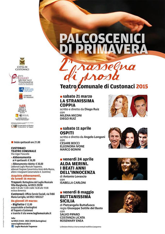 Thanks to the collaboration between the City of Custonaci and the Ente Luglio Musicale Trapanese Stages Spring also lands in the municipality of Custonaci.