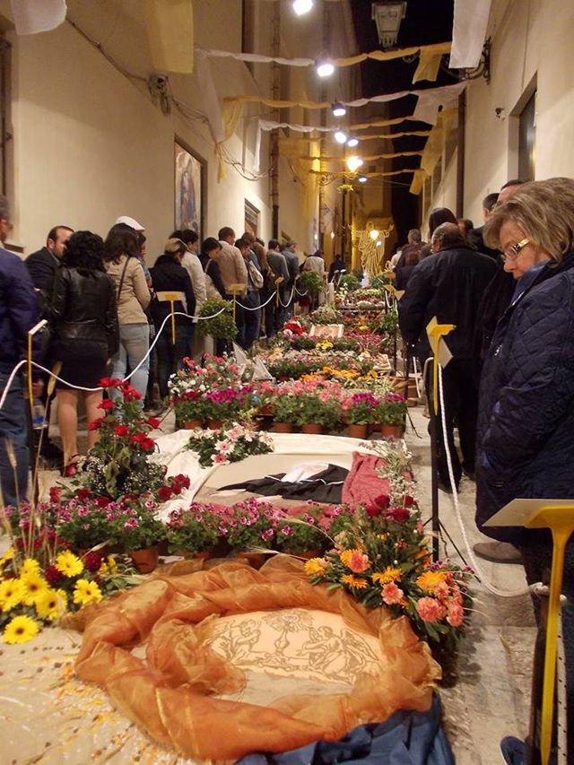 The beautiful staircase of San Domenico will be the location, 22 to 24 May 2015, a large floral display created by young artists from Trapani, which will decorate with the most beautiful flowers, turning it into a work of art. The event, called "Art & Flowers" and now in its fifth year, will have the theme "Mary, Queen of Apostles-The Pentecost." Young artists Trapani, which are Michele Iovino, Alberto Monteleone, Francesca English and Margaret Miceli, realize with lots of flowers, worked in many different ways, the symbols of the Twelve Apostles and Pentecost.