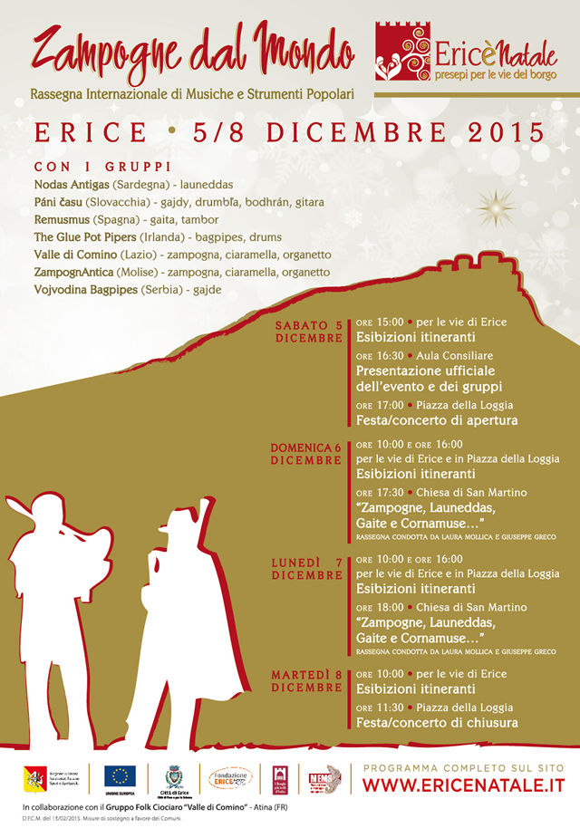 From 5 to 8 December Erice hosts the International Exhibition of Music and Popular Instruments, which will animate the medieval part of a broader event "EricèNatale, cribs in the streets of the village."