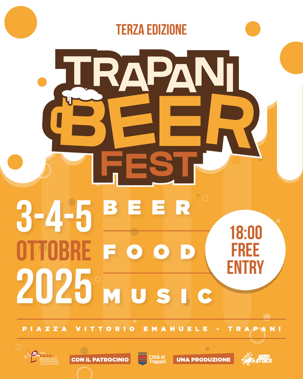 Dal 3 al 5 ottobre 2025 torna a Piazza Vittorio Emanuele la terza edizione del Trapani Beer Fest, l’evento che celebra la birra artigianale e la convivialità con un ricco programma di musica dal vivo e buon cibo.