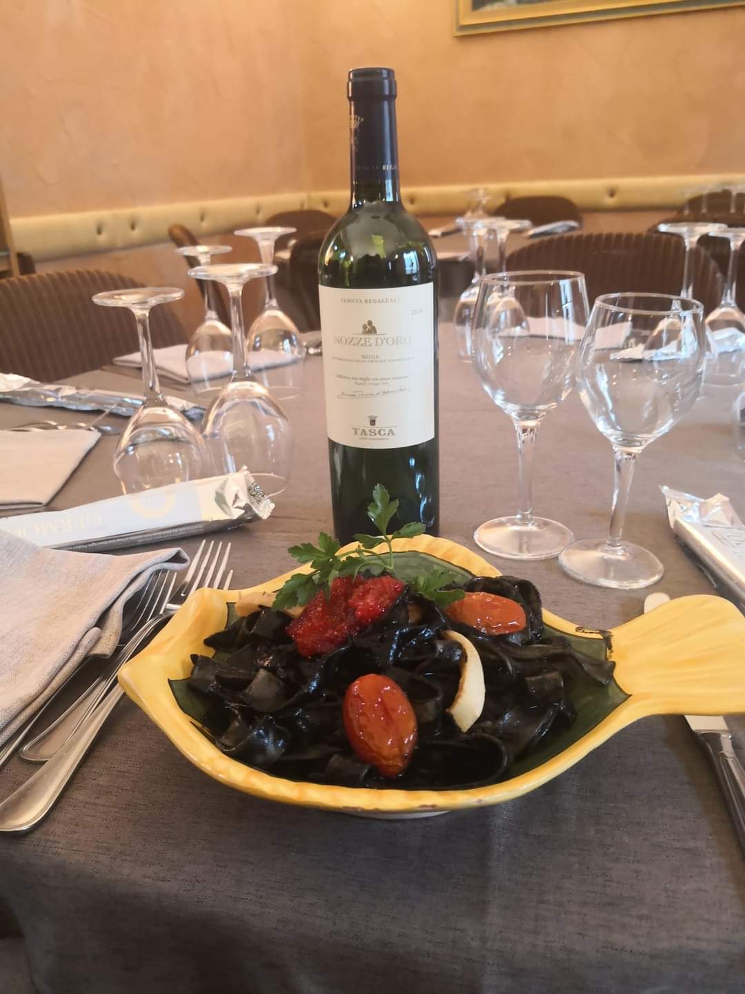 A tal proposito segnaliamo negli antipasti la bottarga di tonno che sposa la mozzarella di bufala, nei primi piatti i ravioli ripieni di cernia conditi con pesce spada alla trinacria, e per passare ai dessert dove primeggiano le cassatelle calde con ricotta, il semifreddo di mandorle, il soufflè di ricotta con amaretti ed un tortino al cioccolato caldo che si scioglie in bocca.